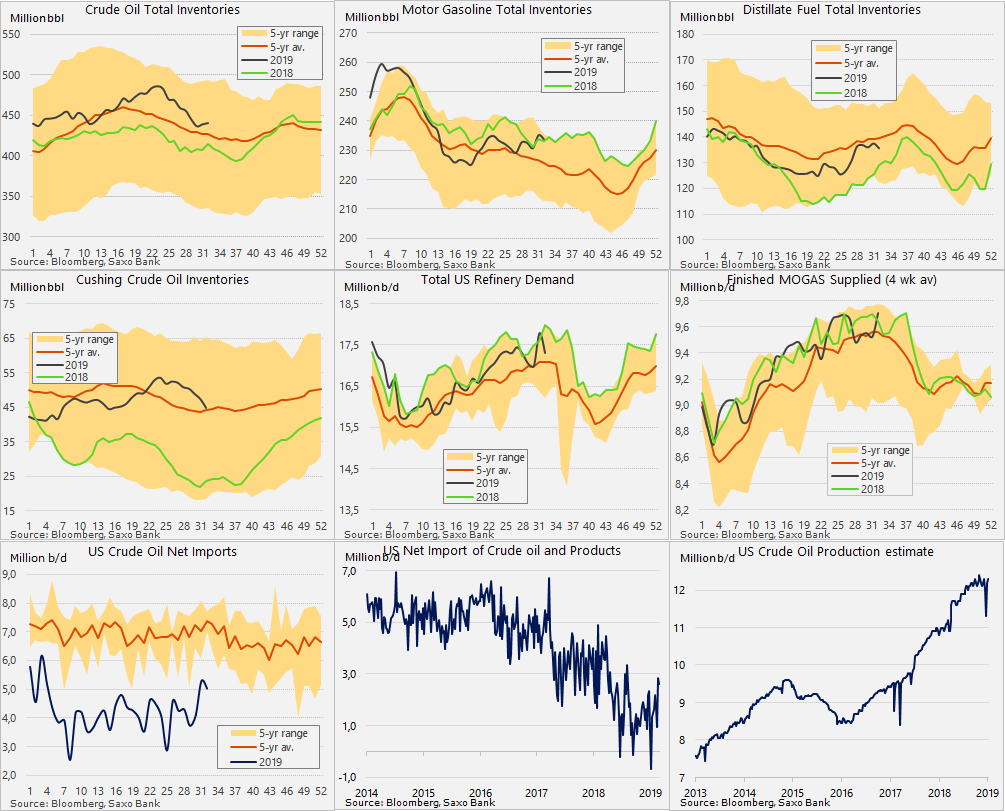 Импортные и экспортные цены США в июле выросли на 0,2% м/м в обоих случаях (прогноз: 0% м/м в обоих случаях после -1,1% м/м и -0,6% м/м соответственно месяцем ранее). При этом на американских фондовых площадках накануне произошел обвал под влиянием уходе спреда доходности между двухлетними и десятилетними казначейскими облигациями в отрицательную область. Исторически такая динамика предвещает скорую рецессию.