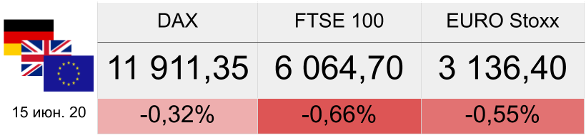 Объем розничных продаж Великобритании в июне вырос на 13,9% м/м и снизился на 1,6% г/г после +12,3% м/м и -12,9% г/г месяцем ранее. Индексы деловой активности в производственном секторе и секторе услуг Германии в июле составили 50 п. и 56,7 п. после 45,2 п. и 47,3 п. месяцем ранее. Аналогичные показатели еврозоны повысились до 51,1 п. и 55,1 п.с июньских 47,1 п. и 48,3 п. Индексы деловой активности в производственном секторе и секторе услуг Великобритании в июле подросли до 53,6 п. и 56,6 п. после 50,1 п. и 47,1 п. в июне. Биржи Европы завершили торги 24 июля на отрицательной территории.